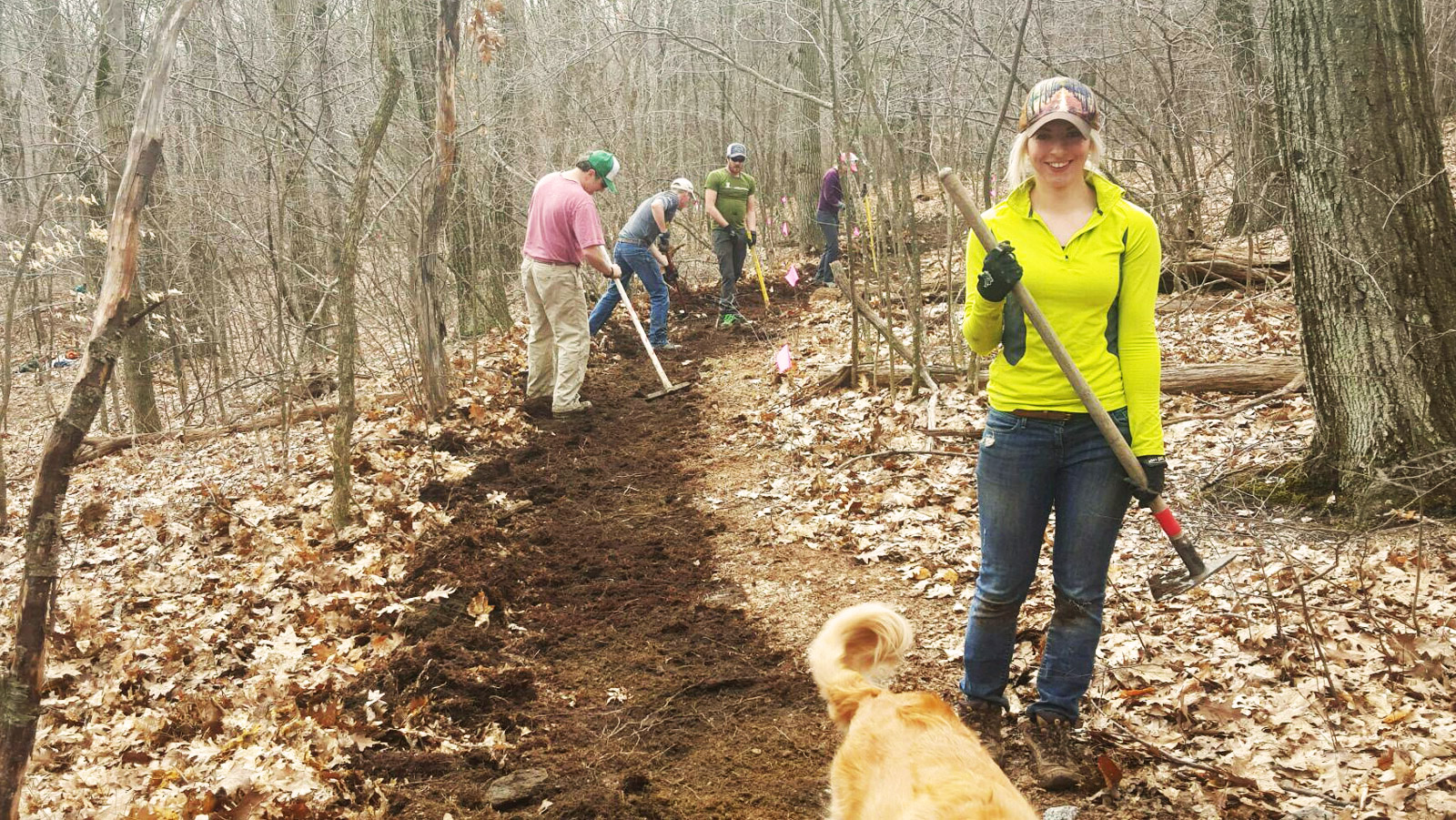We have been working in collaboration with the CHS Outdoor Club to create a multi-use trail network on the campus of Chatham High School. The project started in the spring of 2016, during that time we constructed roughly 1 mile of single track trail (Phase I).